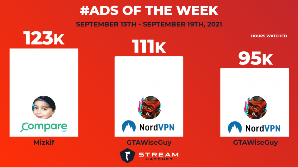 In the most recent #Ads of the Week, Mizkif was back on top following a charity stream partnered with Compare.com and Games For Love. Mizkif and a few other OTK streamers raised money for the charity via an IRL boat stream. Viewers that donated were eligible to win giveaways like in past charitable events by Compare.com and Games For Love. Softgiving, the charitable events company that helped plan the event, have developed campaigns to work with streamers to benefit charitable causes. Asmongold, another OTK member, has hosted various charitable streams benefiting Games For Love through the help of Softgiving.