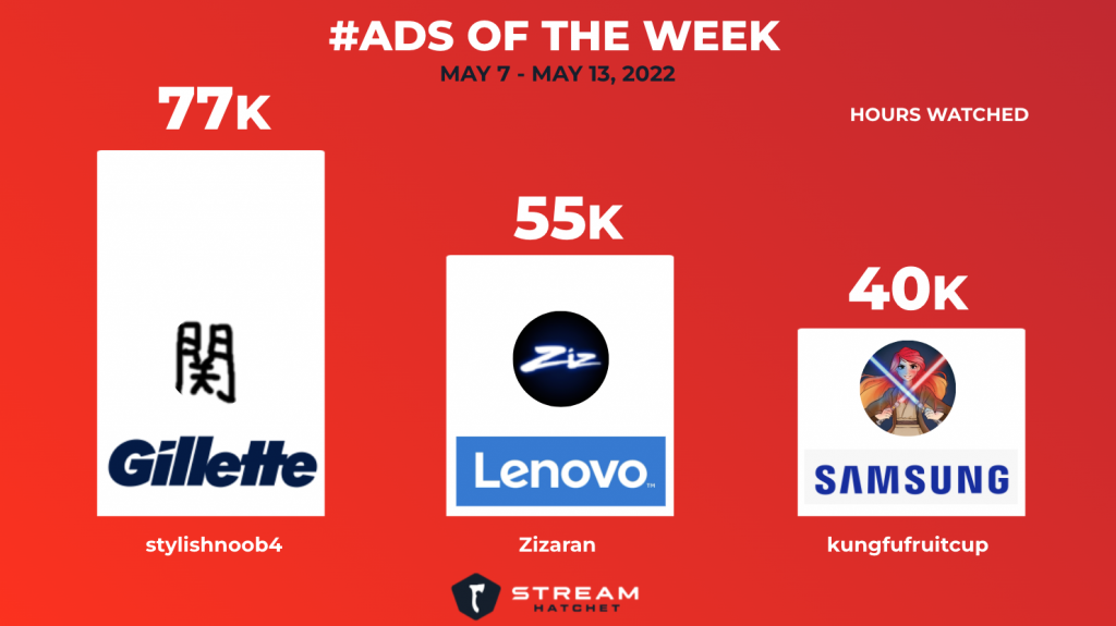 Sylishnoob4 had 77k hours watched on his sponsored stream from Gillette as a part of the Gillette Gaming Alliance. The GGA is in its fourth consecutive year, bringing together a team of gamers to create content around Gillette products. Streamers not only stream their primary games with the Gillette logo on screen, but also create content for the product. They review their shaving routines while running giveaways for viewers who purchase Gillette products.