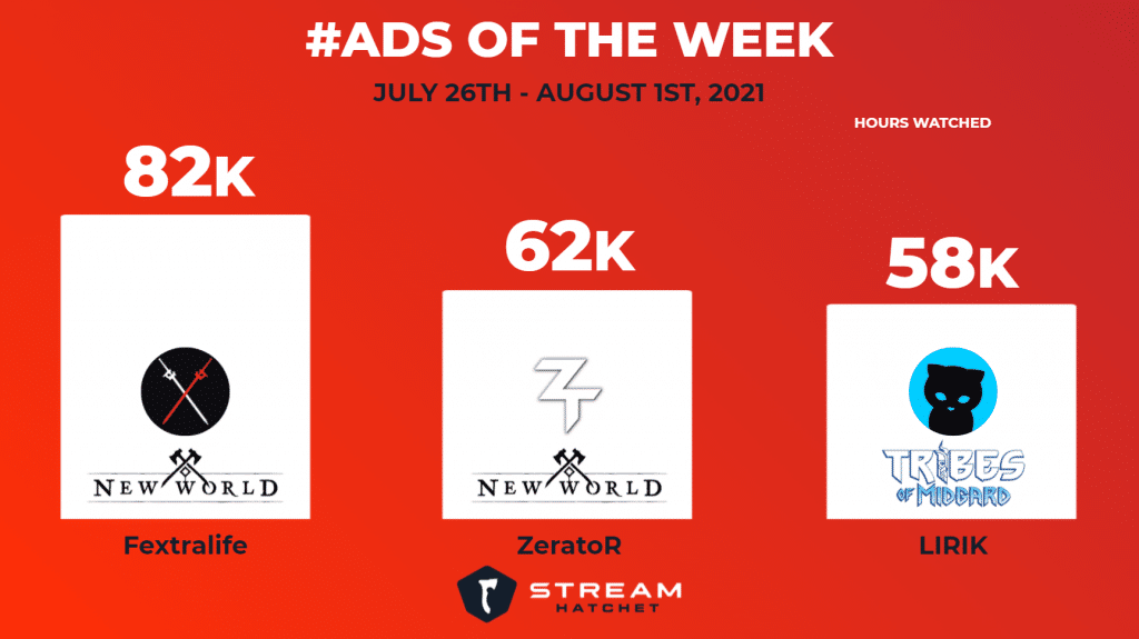 In the newest edition of #Ads of the Week, the New World closed beta is still on top but closely followed by Tribes of Midgard. New World has shaken up the gaming and live streaming world with it’s beta. Many of the top streamers have jumped into the MMO to satisfy their role-playing cravings. However, the closed beta is coming to an end later today (August 2nd) and players will have to wait until August 31st for the full release. The official launch of the game looks to be enormous based on the incredible success of the closed beta.