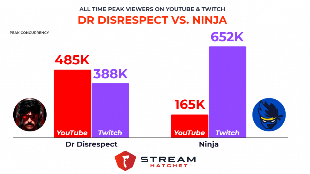 TL;DR: Dr Disrespect returned to streaming but went live on YouTube after his Twitch ban. While his all time peak was higher after the switch, Ninja didn’t have the same luck.