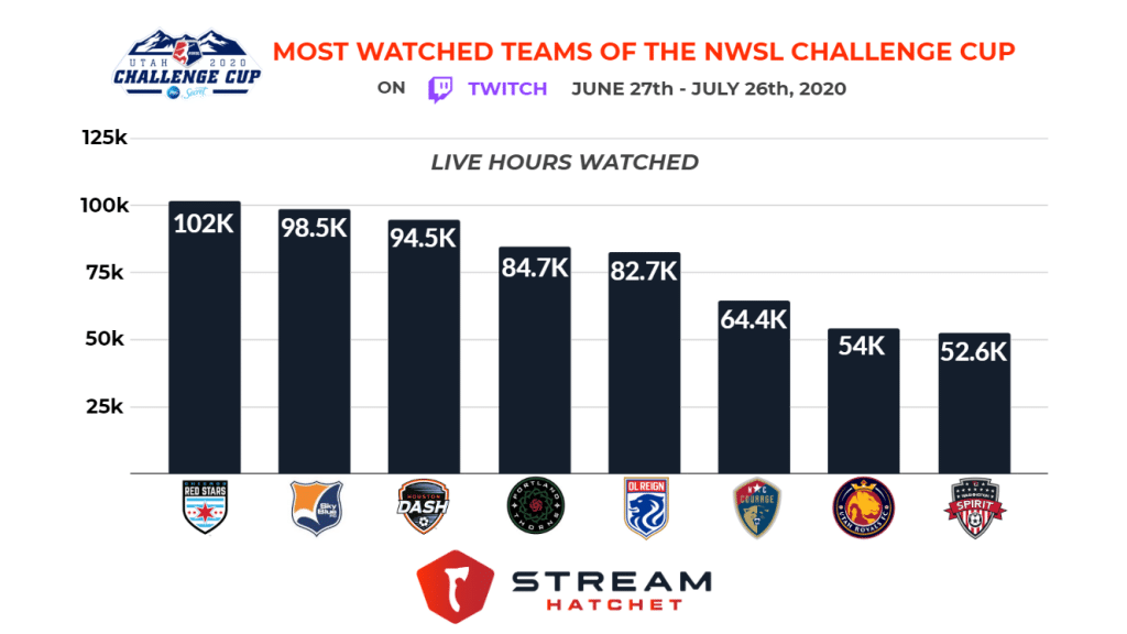Last weekend saw the conclusion of the National Women’s Soccer League Championship Cup, where Houston dashed to victory over Chicago. Earlier this year, the NWSL signed a media rights deal with Twitch to bring one of the first live sports back to fans since the COVID pandemic. The Challenge Cup saw over 335,000 hours of content watched with a peak average minute audience of 19,000 viewers. This week’s insights focus on the most watched teams of the tournament: