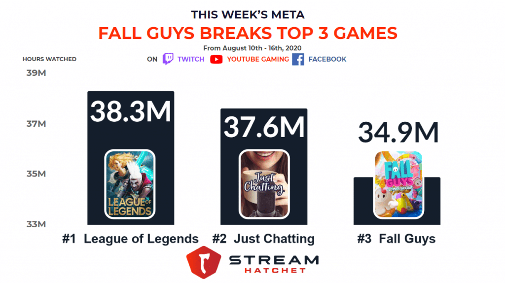 TL;DR: Fall Guys broke into the top 3 most watched games across North American streaming platforms.