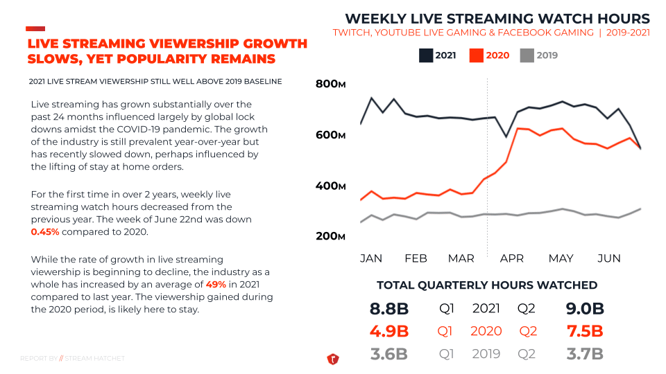 2021 live stream viewership has increased by an